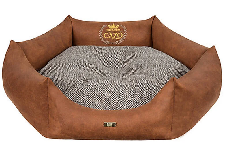 Lit exclusif pour chien ou chat de la marque Cazo. Extérieur en simili-cuir de haute qualité combiné à un tissu exceptionnellement doux. Le lit est équipé d’une housse amovible, lavable à 30 degrés.