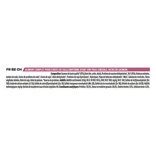 Les croquettes sont spécialement formulées sans gluten de blé* auquel certains chiens sont allergiques. Elles contiennent un mélange spécifique de nutriments sélectionnés pour leur action sur la sensibilité cutanée. Spécialement formulée par nos vétérinaires et experts nutritionnels notre formule contient des ingrédients tels que : du saumon, de la pulpe de betterave déshydratée, de l’oeuf déshydraté pour aider à réduire un possible inconfort cutané chez le chien sensible.